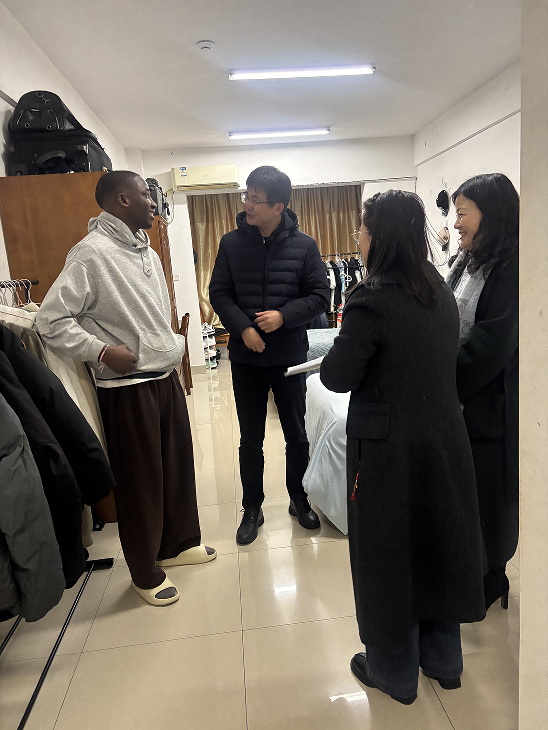 关怀入寝,温暖相伴——校领导走访国际学生公寓——校领导走访国际学生公寓为进一步加强校园安全工作,切实关心国际学生在校学习、生活与住宿情况,1月25日下午,副校长李庆...