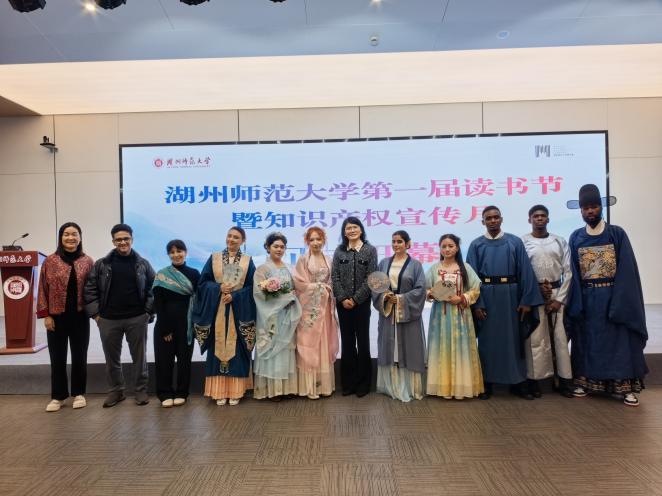 On April 23, World Book Day, the opening ceremony of the first Reading Festival at Huzhou Normal University was grandly held. The 'Flower Goddess' Hanfu show, initiated by the Second Party Branch of the Faculty of the School of International Education and jointly participated by Chinese and foreign students, made a stunning debut, becoming a cultural highlight that transcended national boundaries at the opening ceremony.